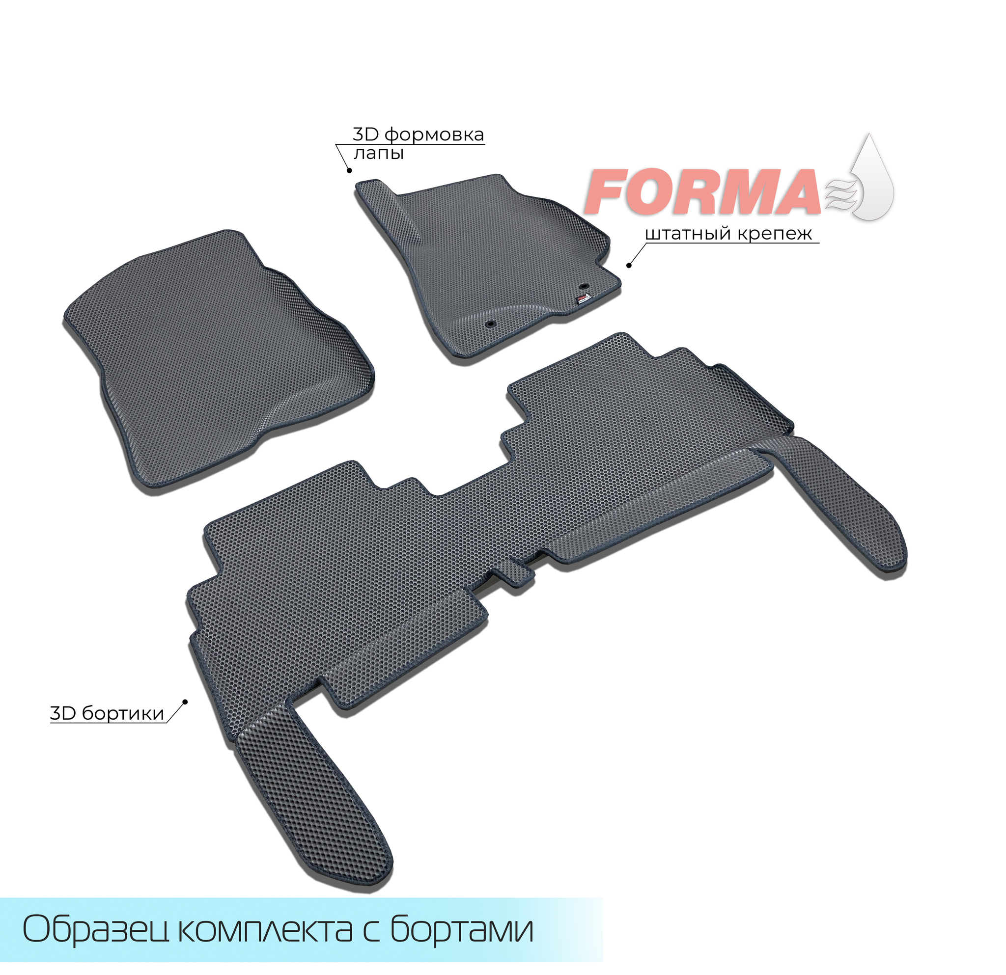 При производстве ковриков от компании FORMA, используются высококачественные сертифицированные материалы и свои собственные лекала, снятые непосредственно с автомобиля. Коврики надежно крепятся к полу при помощи липучек и штатного крепежа, при его наличии.
