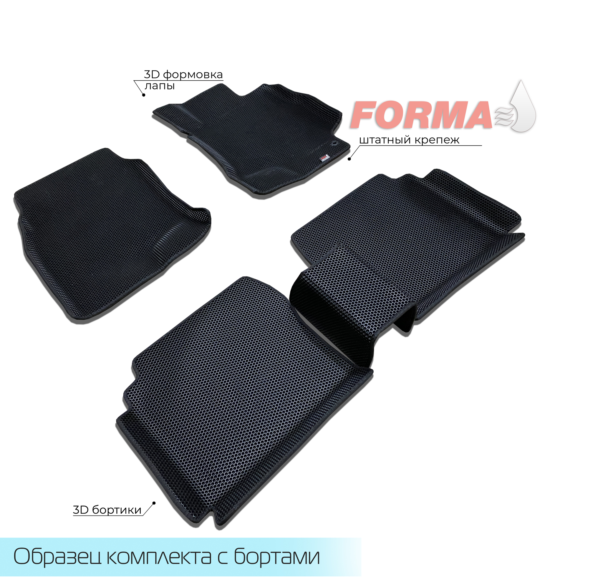 При производстве ковриков от компании FORMA, используются высококачественные сертифицированные материалы и свои собственные лекала, снятые непосредственно с автомобиля. Коврики надежно крепятся к полу при помощи липучек и штатного крепежа, при его наличии.