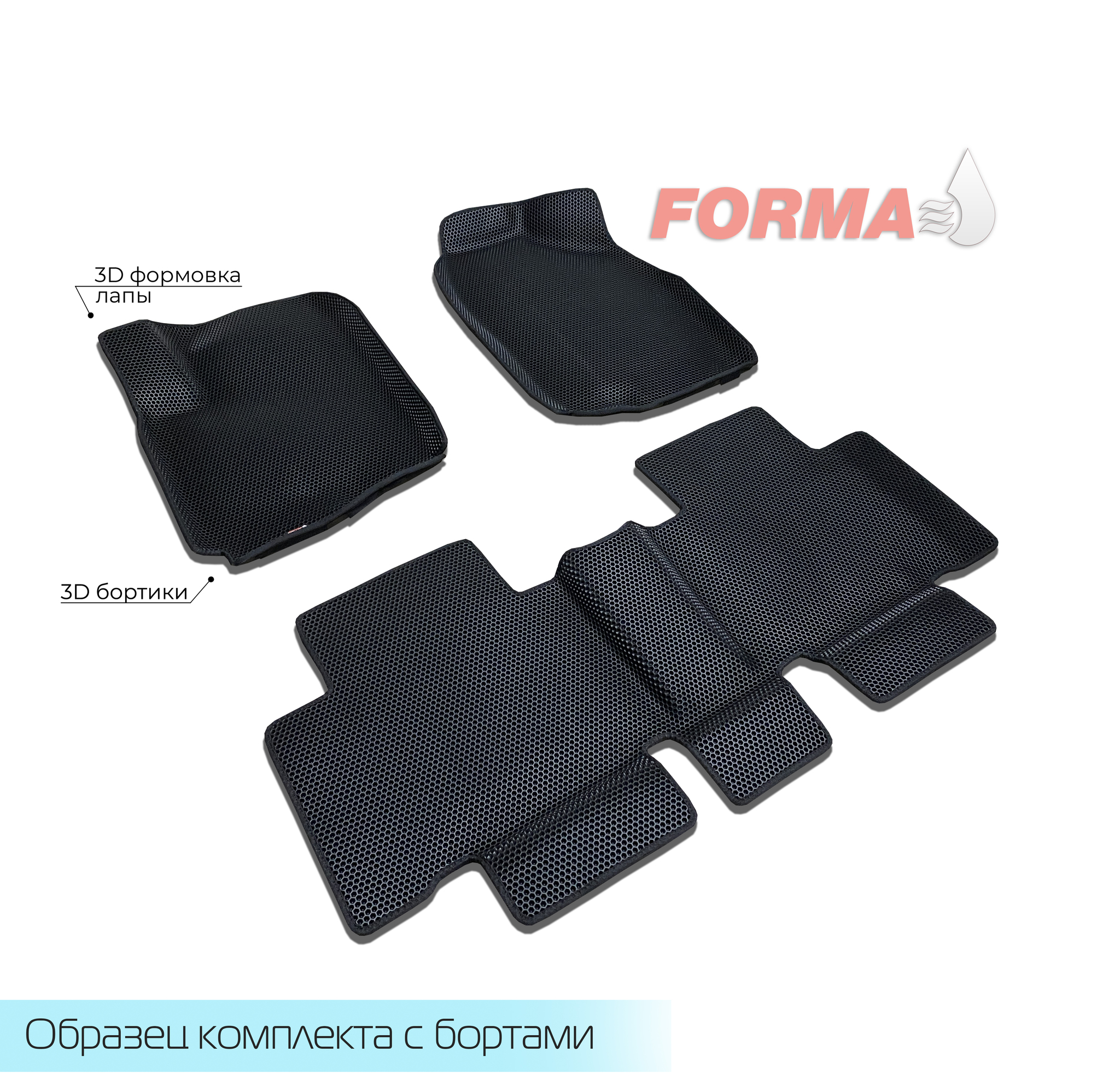 При производстве ковриков от компании FORMA, используются высококачественные сертифицированные материалы и свои собственные лекала, снятые непосредственно с автомобиля. Коврики надежно крепятся к полу при помощи липучек и штатного крепежа, при его наличии.