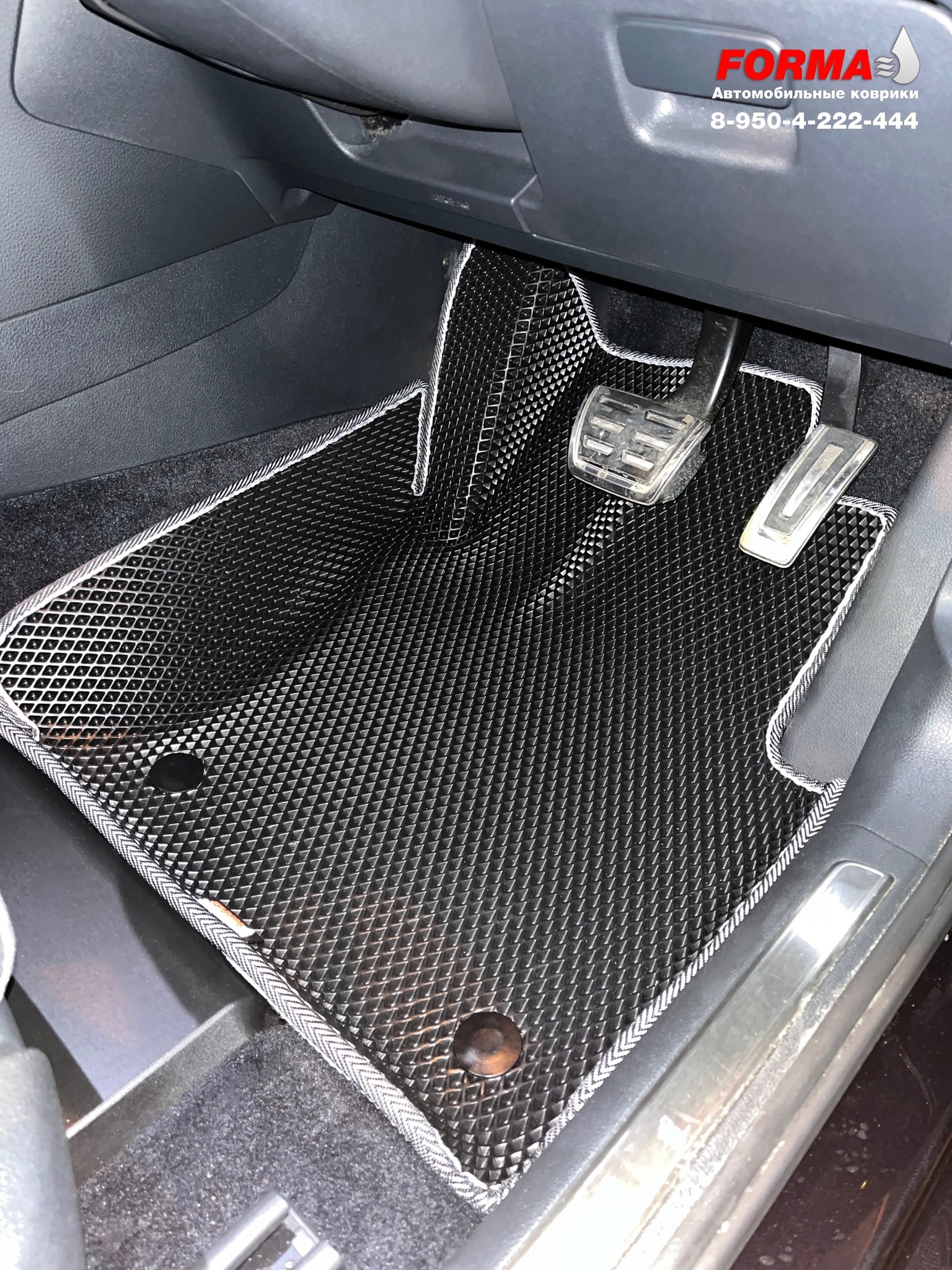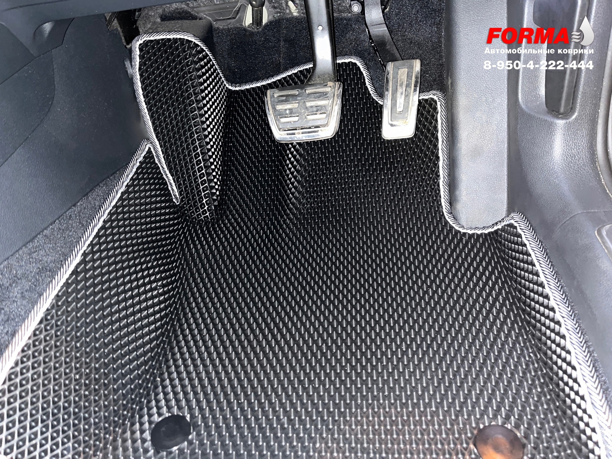 При производстве ковриков от компании FORMA, используются высококачественные сертифицированные материалы и свои собственные лекала, снятые непосредственно с автомобиля. Коврики надежно крепятся к полу при помощи липучек и штатного крепежа, при его наличии.